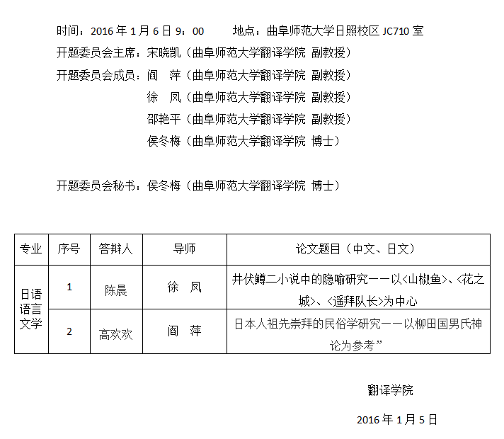 pg娱乐城 2014级硕士学位论文开题通知-日语语言文学