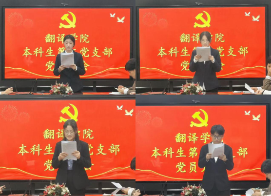 主持人报告参会人员到会情况并介绍了大会的主要议程。会上,马晓玥等24名发展对象依次宣读入党志愿书,汇报了个人情况、入党动机等。入党介绍人依次发表意见,支部委员会报告发展对象综合政审情况,并对发展对象是否符合党员条件进行了充分讨论。经正式党员发表意见和无记名投票,一致通过马晓玥等24名发展对象为中共预备党员。