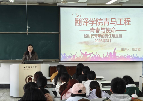 团委书记胡芳敏主讲,2023级翻译专业学生参与。
