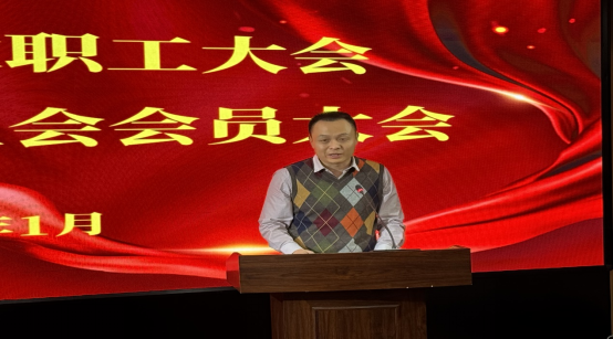 1月3日下午,pg娱乐城 在pg娱乐城 801会议室成功召开四届二次教职工大会暨工会会员大会。本次会议旨在总结过去一年pg娱乐城 工作成果,审议新议题,谋划新发展,为pg娱乐城 进一步高质量发展群策群力。pg娱乐城 党政班子成员、分工会主席、全体教职工暨工会会员参加了会议。会议由党委副书记岳峰主持。