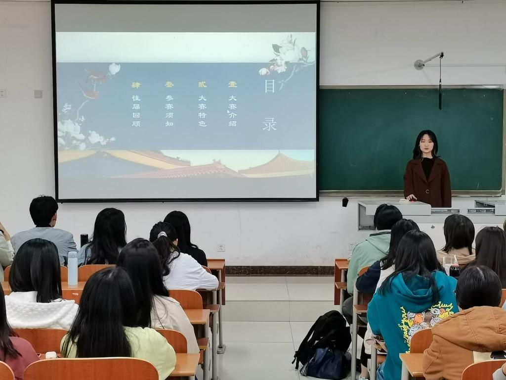 组织,旨在向全校大学生推广大赛,达到以赛促学、以训促学、传播中国优秀文化、讲好中国故事的目的。全校学生积极报名参与了本次活动。