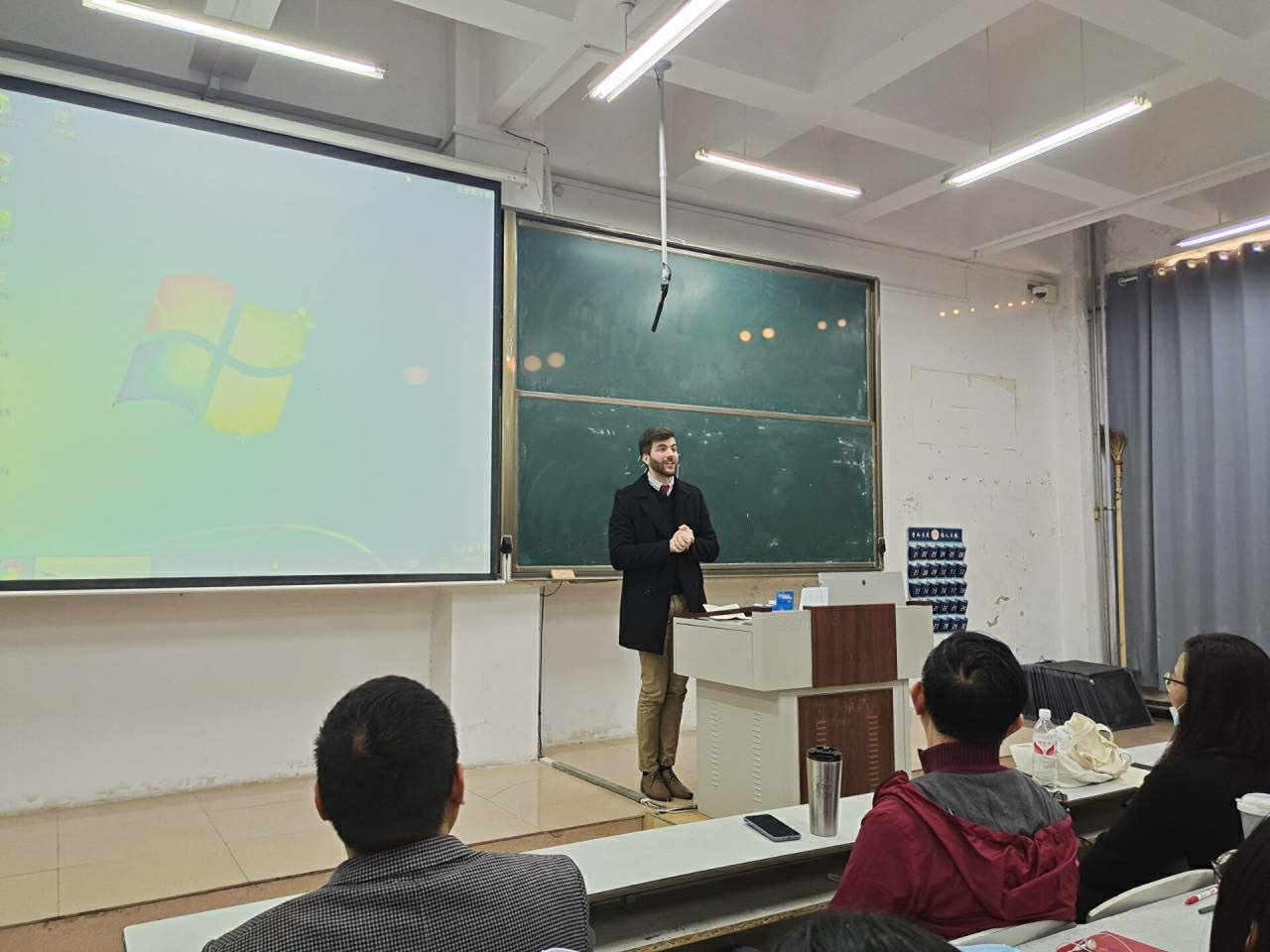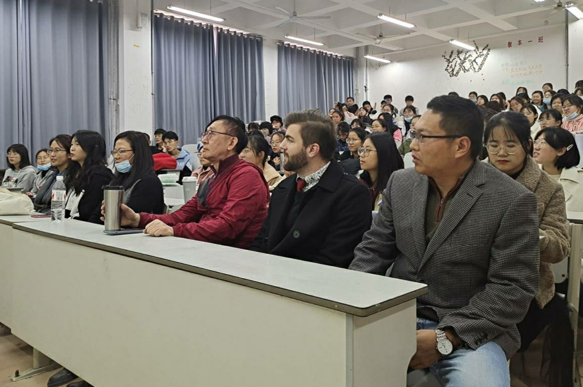 教授伊咏、兼职教授刘新新、外教Sean Vianello和部分商务英语专业老师出席了本次见面会。见面会由商务英语系主任刘瑶博士主持。