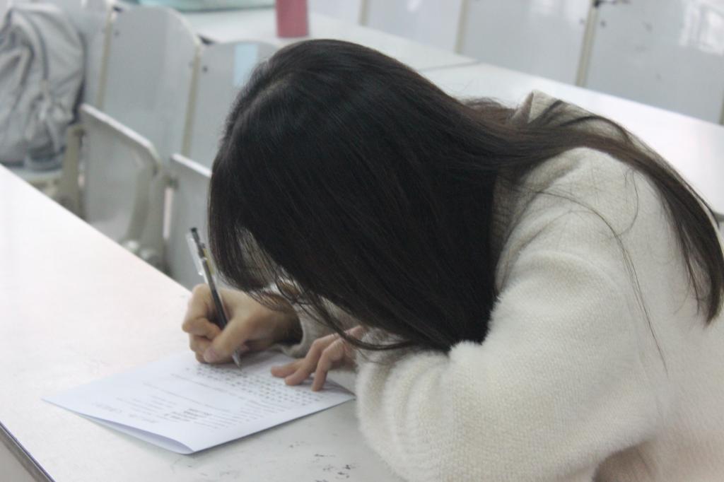 此次文化达人挑战杯初赛采用笔试的形式对参赛选手进行初步选拔,考试内容覆盖范围广泛,题目涉及节日风俗、戏曲、饮食文化等方面。此次笔试包括选择题、填空题、名句默写题以及鉴赏题四大题型,考试总时长为90分钟。答题时各位选手沉着冷静,奋笔疾书。经过30分钟的紧张答题,同学们陆续完成答卷。经过组委会工作人员仔细批阅,四位同学成绩优异脱颖而出,成功进入复赛。她们是王文慧、高瑞遥、唐成芳及李孜康。至此,第四届文化达人挑战杯初赛圆满结束。