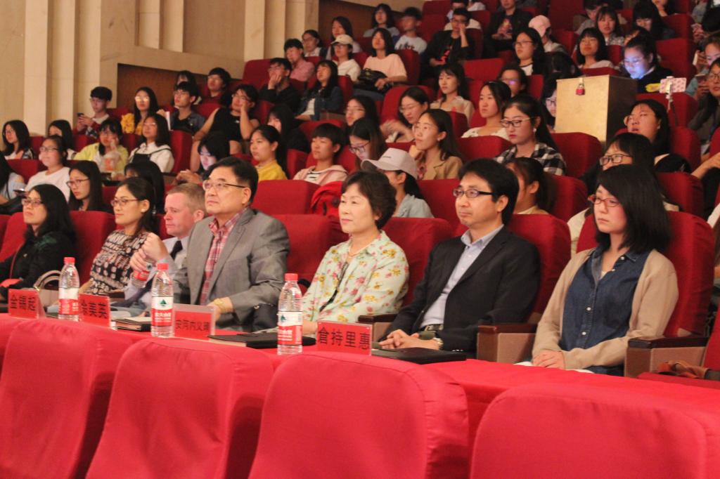 团委主办、文艺部承办的第七届外文演剧大赛于音乐厅顺利举行,出席本次大赛并担任评委的有刘瑶、金锡起、徐美英、仓持里惠、安何内义晴、Brian老师。