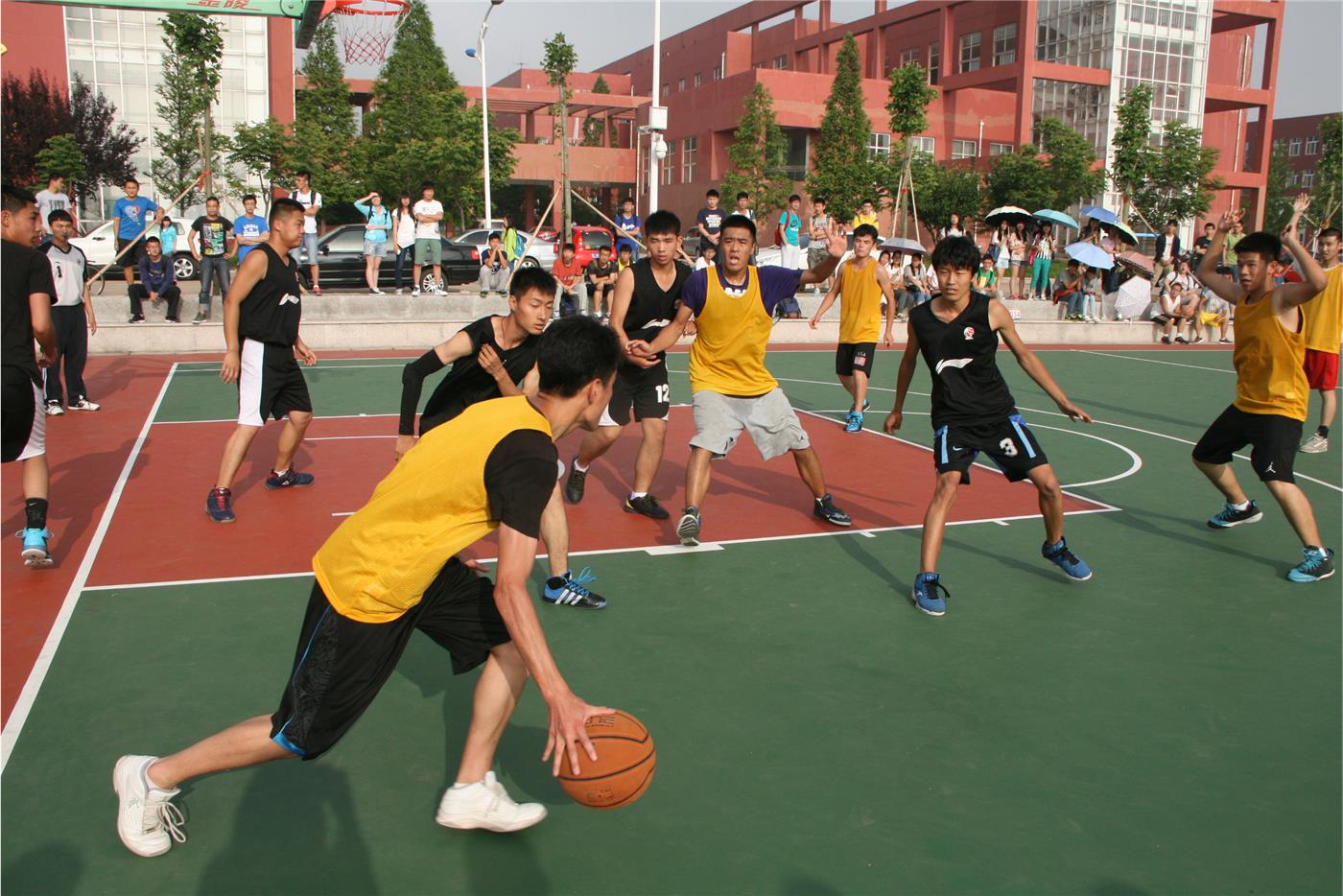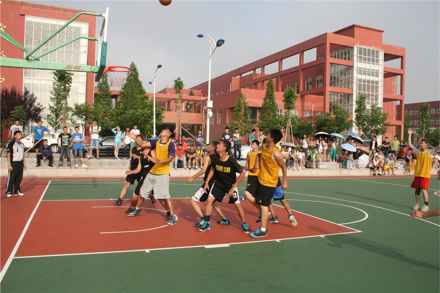 前来观战的同学们自觉组成一队为篮球健儿们呐喊助威,球场气氛十分活跃。双方队员都迅速进入状态,展开一场激烈的篮球赛事。在场上你争我夺、你攻我守,展开了一轮轮的投球,投球动作帅气利落,双方队员激情高涨,争夺异常激烈。pg娱乐城