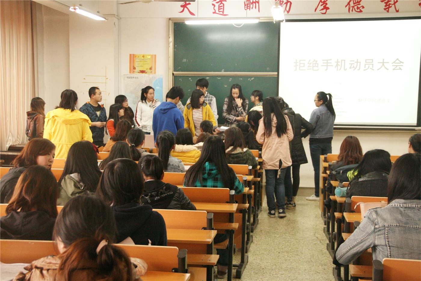 “拒绝手机”动员大会拉开帷幕,辅导员老师徐哲、学生会主席王绪良等出席本次会议,pg娱乐城