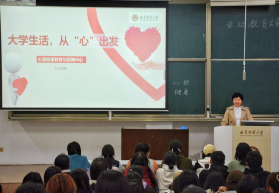 劳动教育实施方案》展开讲解,谈到心理健康与劳动教育的内在联系及其对个人发展的重要影响。刘明选取多个具有代表性的案例进行分析,向新生强调在面对学习压力时如何保持积极向上的心态,在劳动实践中如何锻炼吃苦耐劳的坚毅品质。