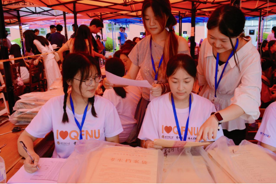 “同学,档案请在这里核对登记,有不清楚的地方随时喊我!”在新生报到处,队员们分工明确、配合默契,成了现场最可靠的“螺丝钉”。有的专注于新生档案的收取、核验与归档,指尖翻飞间仔细核对每一项信息,确保“零差错”;有的主动化身“校园向导”,围绕专业课程设置、未来就业方向、宿舍生活贴士等新生最关切的问题,掰开揉碎地讲解,手把手地指引,把“解惑”做到新生和家长的心坎里;还有的默默扛起“后勤保障”责任,帮拎行李、引路线、递温水,用一次次弯腰、一声声问候、一滴滴汗水,让初来乍到的新生感受到家一般的温暖。