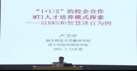 卢卫中教授应邀作题为“‘1+1>2’的校企合作MTI培养模式探索——以RWS和智慧译百为例”的大会发言。卢卫中教授结合pg娱乐城