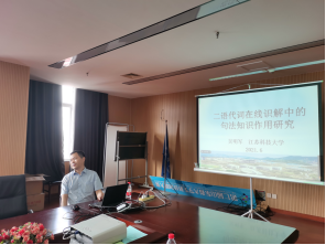 随后,吴明军教授做了有关“二语代词在线识解中的句法知识作用研究”的主题报告。研究采用自定步速阅读实验,考查了形态-句法特征和句法结构两种句法知识在二语不同性别代词him和her在线共指加工的作用。吴教授学术态度严谨,汇报生动,引发了在座师生对相关研究的思考。