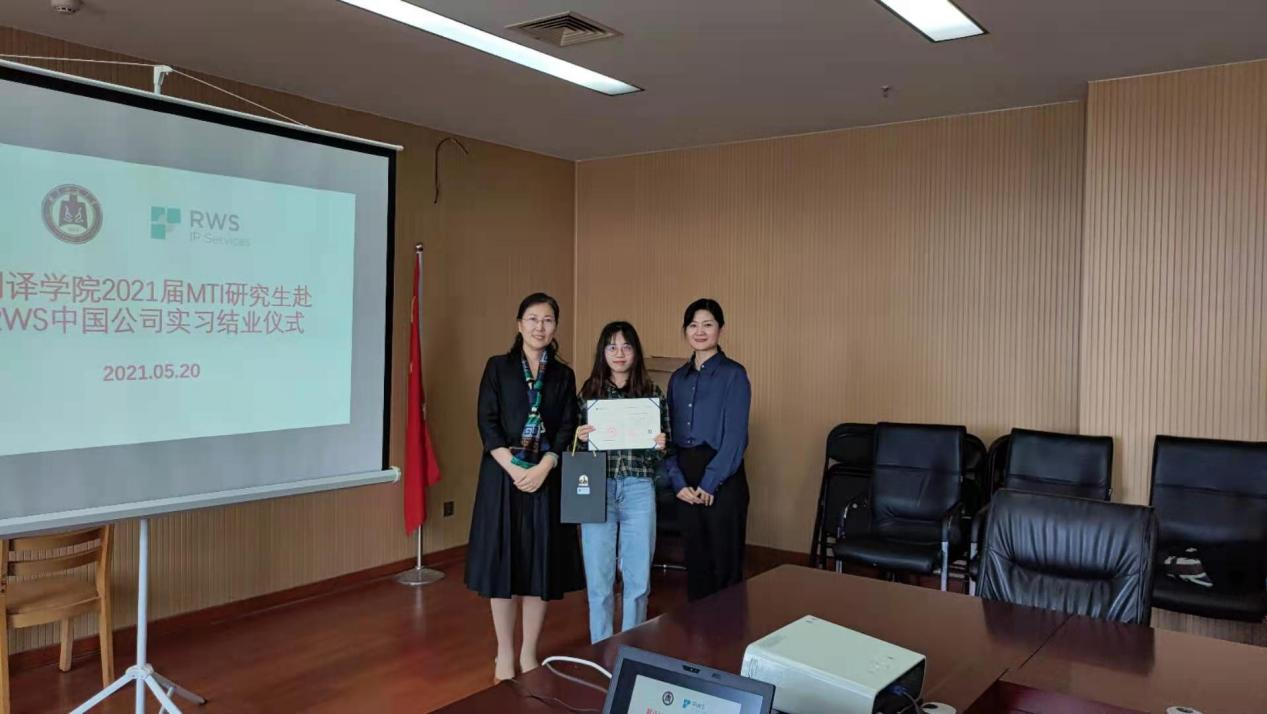 2021届MTI研究生赴RWS(中国)公司实习结业仪式在JC801会议室举行。RWS中国公司副总经理、日照分公司总经理郑金凤,高级项目经理姜宁,财务经理、校企直通163项目负责人朱芳,日照分公司HR李捷,pg娱乐城