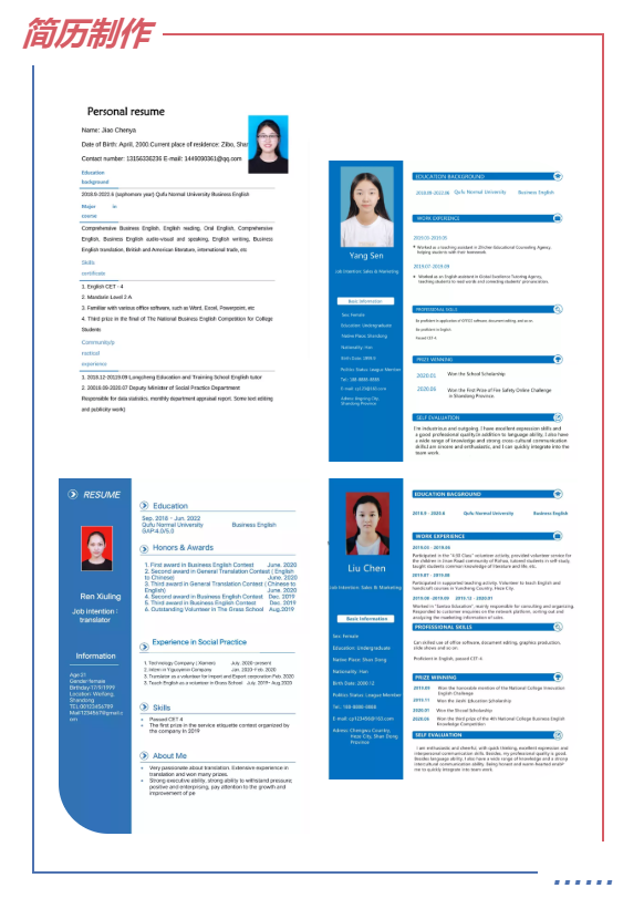 (学生完成制作英文简历的实习任务)