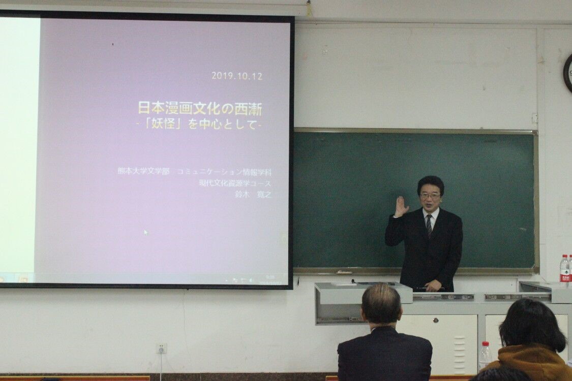 铃木教授首先以日本民俗文化中的妖怪为切入点,指出妖怪经过多年发展逐渐演变成漫画中的一些经典人物。其中,传统妖怪的创作极富地域特色,这种富于特色的多样形象同时又构成了民俗文化的重要部分。之后,铃木教授介绍了熊本大学漫画研究的兴起与研究现状,以及与漫画有关的一些极具创意的文化产品在民众的文化生活中产生的重要影响。