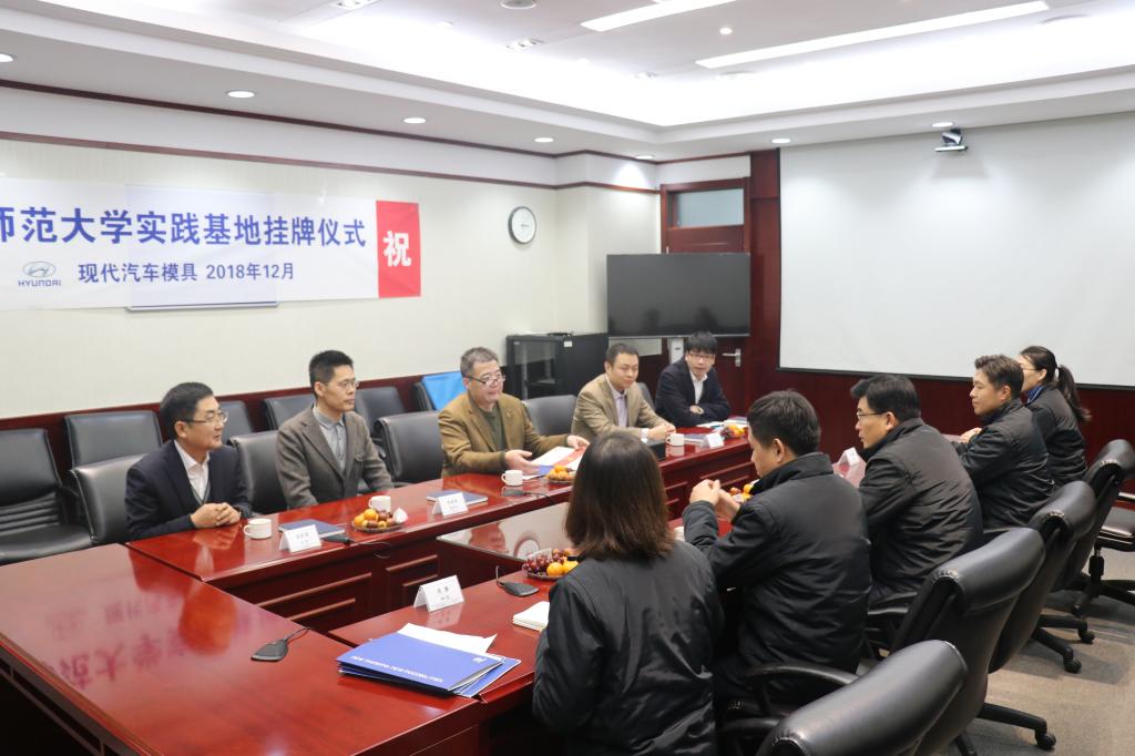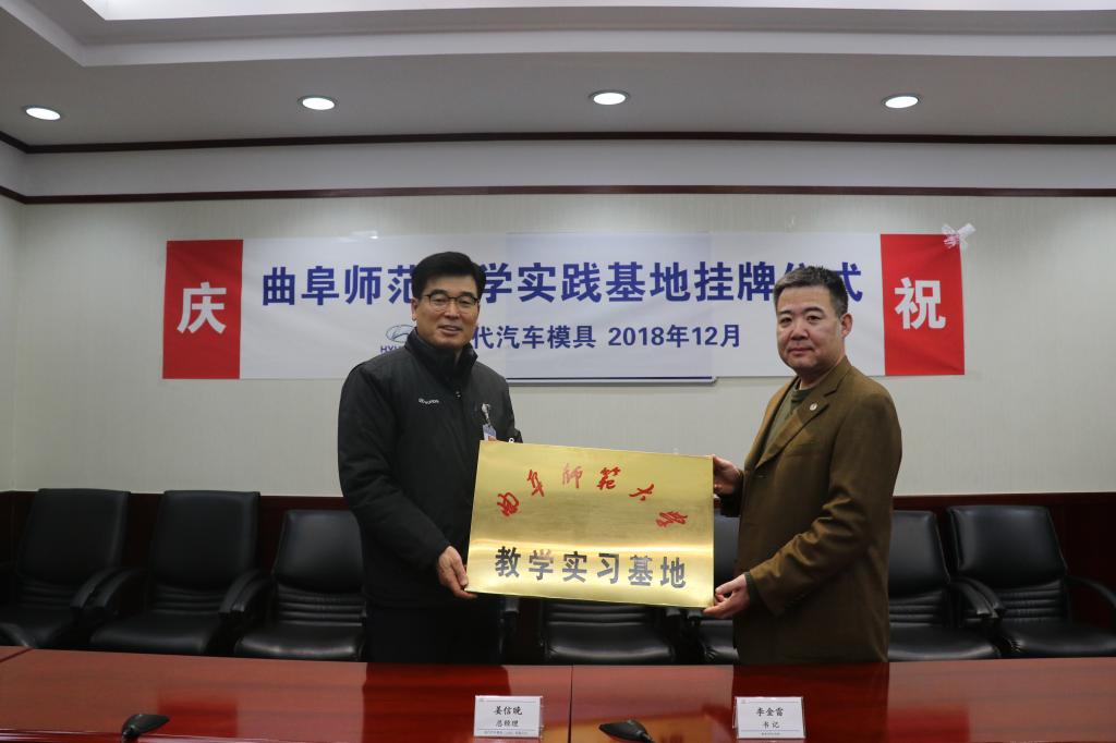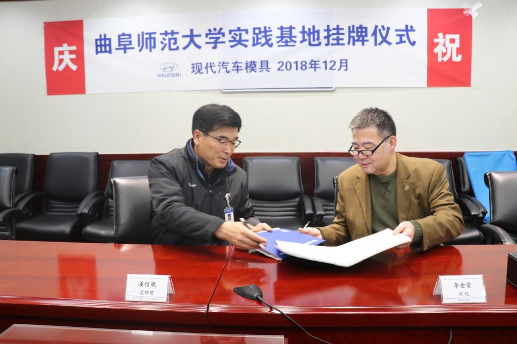 与现代汽车模具(山东)有限公司实习基地挂牌签约仪式在现代汽车模具有限公司举行,现代汽车模具总经理姜信晚、经营支援部部署长朴載顯、人事总务科科长周黎、工会主席朴云龙,pg娱乐城
