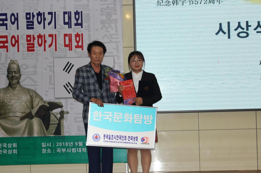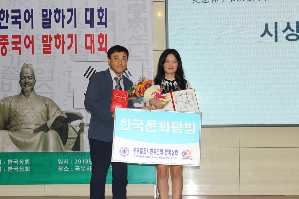 共有三名学生参加此次大赛并取得了优异的成绩。陈雪婧同学和路瑶同学都获得了“唐津市议会议长奖”,朱凯娜同学获得了“唐津市市长奖”,这三位同学还同时获得了韩国七日文化体验游的机会。卢正爱、金红英、姜坤三位老师获得大会主办单位和日照市人民政府外事侨务办公室一起颁发的优秀指导老师奖。大会主办单位日照市韩国人商会还为pg娱乐城