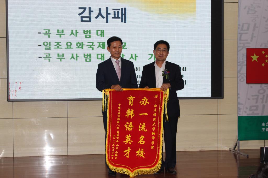 韩语系颁发锦旗,并再次祝贺本次活动的圆满成功。