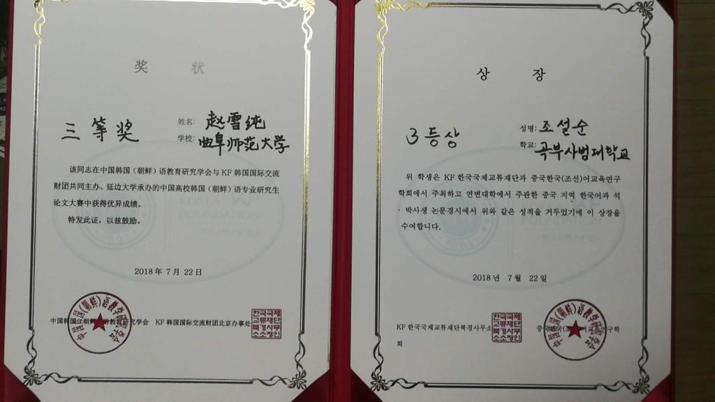 2018年7月20日至22日,中国韩国(朝鲜)语教育研究学会2018年度国际学术大会和全国高校朝鲜语专业硕博研究生论文大赛在延边大学举行。本次大会由中国韩国(朝鲜)语教育研究学会和KF韩国国际交流财团主办,共有来自中国、韩国、日本、英国等国家的200多名学者参加;北京大学、北京外经贸大学、复旦大学、上海外国语大学等全国19所高校共20余名研究生参加了这次全国高校朝鲜语专业硕博研究生论文大赛。本次朝鲜语专业硕博研究生论文为自命题形式,要求选手通过课件进行现场讲解,pg娱乐城