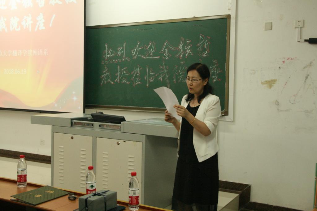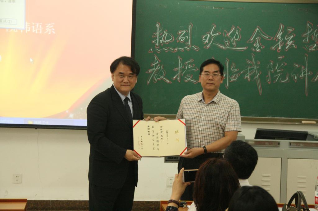 兼职教授”聘书,聘任仪式由夏云副院长主持。讲座由韩语系主任金东国博士主持,pg娱乐城