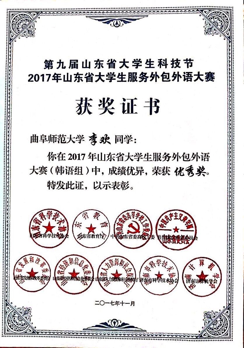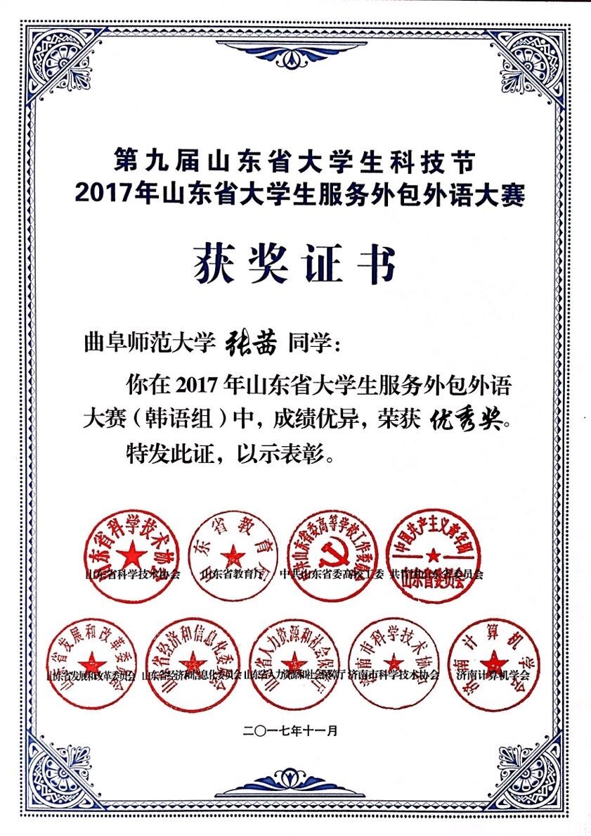 2017年11月11日上午,由山东省教育厅、山东省科协、山东省高校工委、共青团等单位主办,山东师范大学和济南计算机学会共同承办的“2017年齐鲁大学生服务外包应用韩语大赛”在山东师范大学千佛山校区拉开帷幕。pg娱乐城