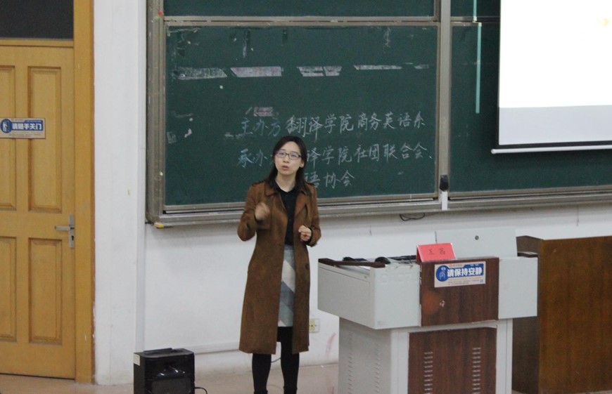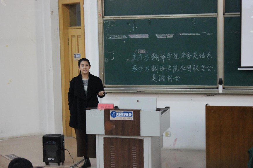 除此之外,还有来自拾柴读书会的特邀嘉宾为大家带来的精彩演说。杨惠宁围绕着“Label yourself for career development”进行了演讲。她向大家提出了一种“发现自我,找寻属于自己的标签”的观点,并指出发现自我的过程也是不断实践的过程,需要我们做到不焦虑,以平稳的心态对自身做出正确定位,并告诫大家,只要“胸怀向往,心向热爱”,找到了属于自己的“标签”后不断付诸实际行动,不断加深突出自己的“标签”,最终定能展现出个人的才华与光彩。