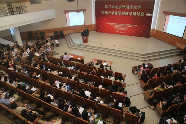 英语类专业群和外语教学与研究出版社联合举办“第三届北京外国语大学写作开放课堂暨教学研讨会”。来自全国80余所高校的160余名教授写作课程的教师参加了本次开放课堂暨研讨会,通过主旨报告、专题研讨、开放课堂、说课评课和教学活动展示等环节,就新时期英语写作教学改革和教学模式作了深入的研讨。