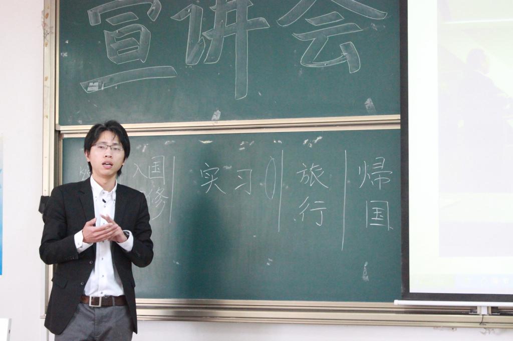 活动伊始,项目主讲人陈科从项目开展的目的及方式、项目具体岗位、项目流程、项目反馈等几个方面进行介绍,就学生普遍关注的项目时间、费用、主题、安全保障等问题做了详尽说明,并以历届参加在日实习生活学生的图片为例介绍实习流程、生活状况以及协会独特的研究讲习、全程保障的服务;随后在学生问答环节,宣讲人陈科全面解答学生关于医疗保障、酒店选择、具体付费时间等方面的疑惑,详细的解答让同学们获益匪浅;最后,北村慎悟向同学们提出建议,阐明日语学习中会话的重要性,并鼓励同学们在赴日带薪实习中提高自己。