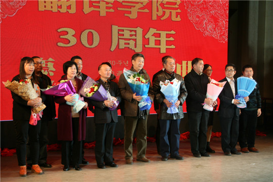 送祝福的视频集锦拉开了本次晚会的序幕。晚会伊始,85级校友和在校生用诗朗诵的形式为大家带来了一场跨越三十载的对白,悠悠《犁牛之子》荡漾在舞台中央,也荡漾在每个翻译学子的心中;诗朗诵结束后,15级同学为85级师哥师姐们佩戴校徽,继而校友代表们为教师代表献上鲜花。三十年来,pg娱乐城
