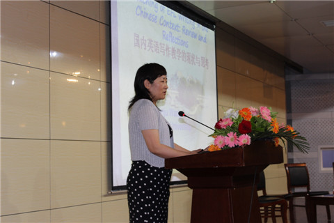 报告中,王教授围绕国内英语写作教学的调研情况展开问题分析与对策研究。王教授在向大家阐明了写作的重要性的基础上,把中国与美国的写作教学情况进行了比较,指出了国内与国外的写作教学现状与差距。同时,王教授还向大家详细介绍了写作这门课程的分类以及它们不同的特点,指出了作为一个专业英语教师应具备哪些能力和教学方法,并针对英语写作提出许多建设性建议,使老师和同学们获益匪浅。