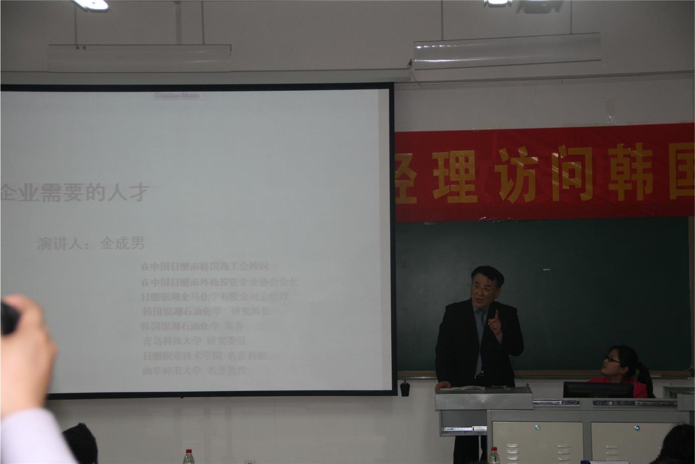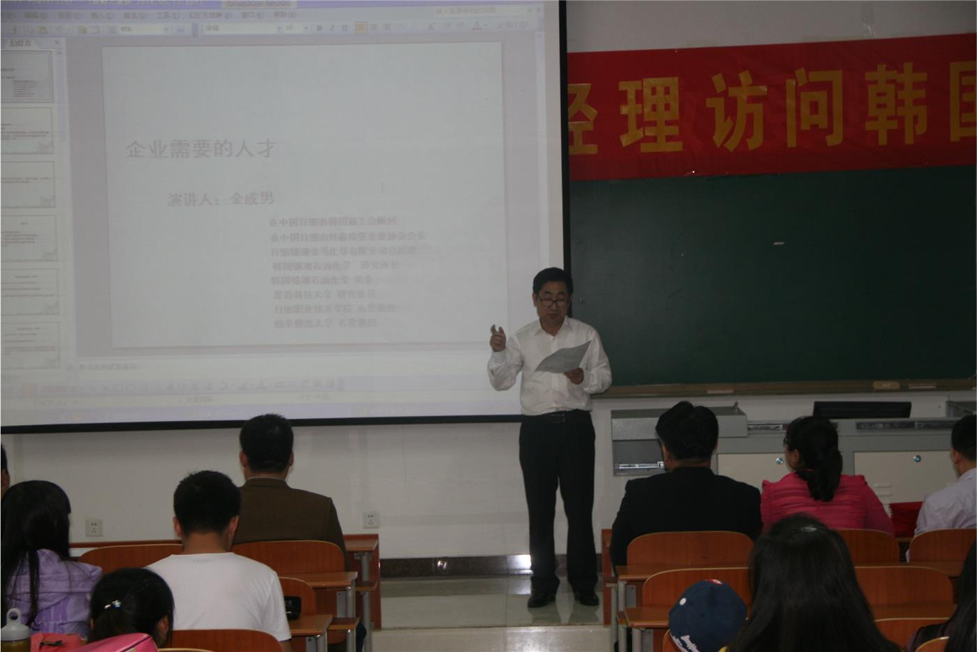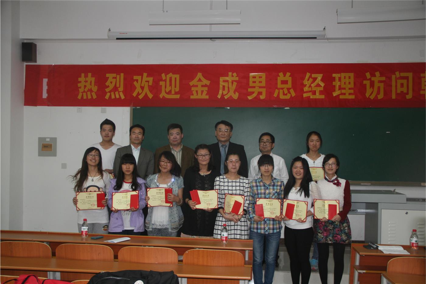 韩国语系“金成男—锦湖金马化学”奖学金颁发仪式暨韩国pg娱乐城教育会在S107教室隆重举行。pg娱乐城