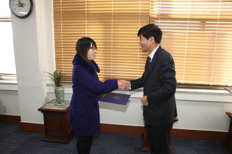 长郑亨镇亲自授予获奖证书。据悉,此奖项是从2009年起为表彰在教育教学领域和学术研究领域做出杰出贡献的安东大学教师而设立的。