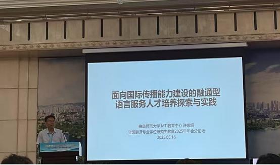 在“高端翻译职业胜任力培养路径”分论坛中,许家绍副教授以“面向国际传播能力建设的融通型语言服务人才培养探索与实践”为题进行发言。强调国际传播能力是国家软实力的核心,MTI教育应依托政产学研用协同机制,培养具备国际传播能力的语言服务人才。他以pg娱乐城