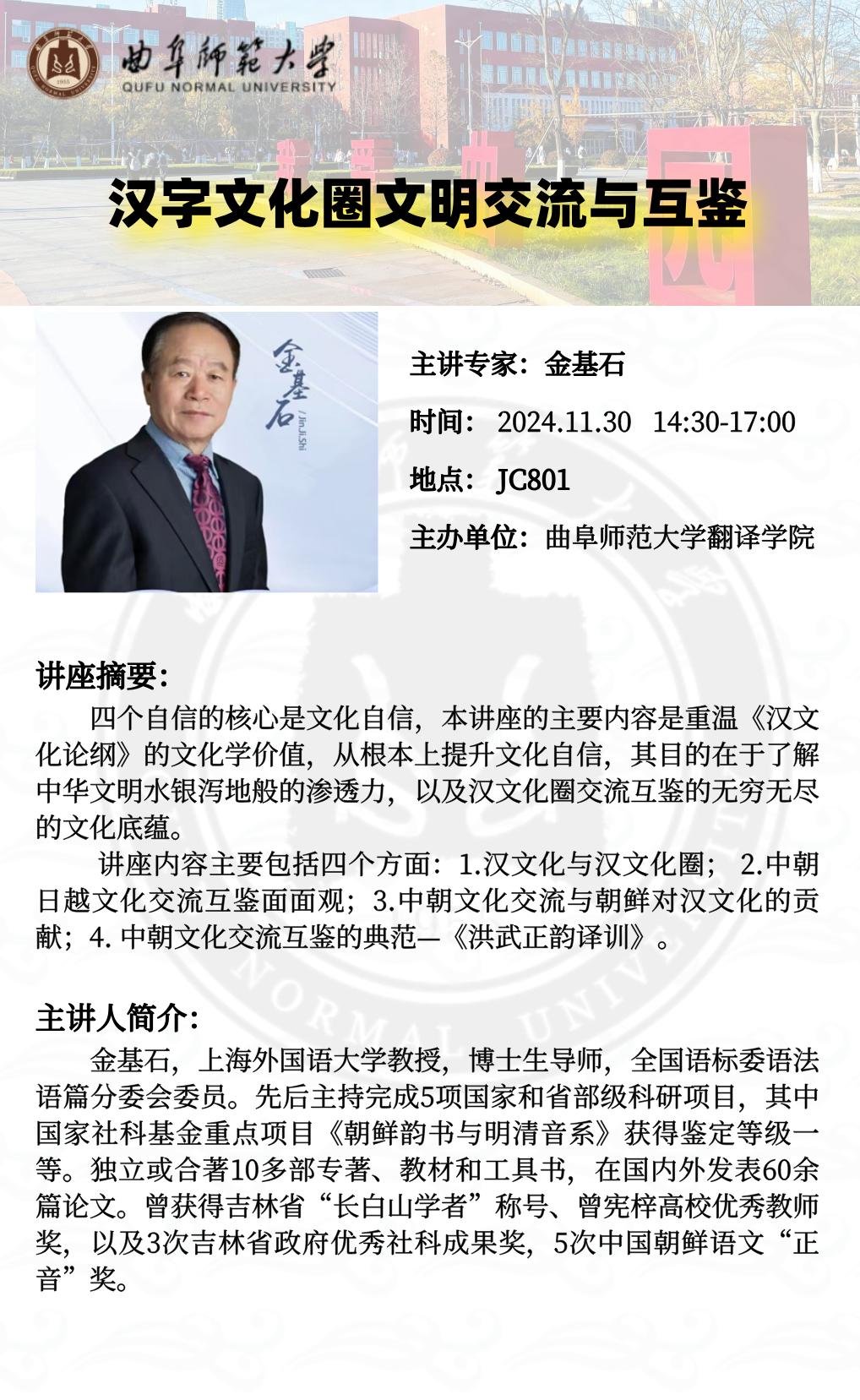 金基石教授专家讲座:汉字文化圈文明交流与互鉴